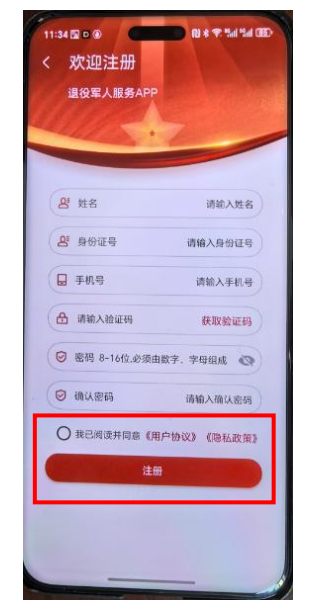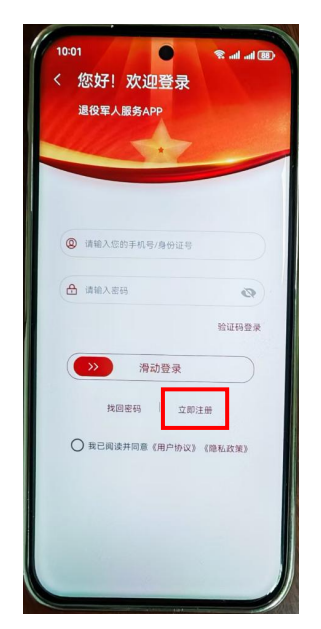 退役军人服务app新用户注册: