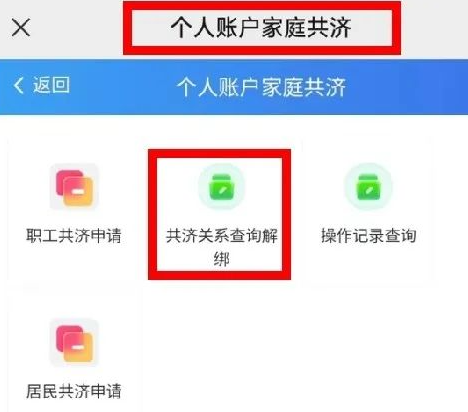 参保人进入个人账户家庭共济页面,可查询绑定的亲属账户等信息。如需解除绑定关系,可通过“共济关系查询解绑”进行解绑操作。