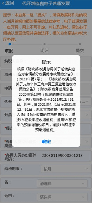 5、进入【代开增值税电子普通发票申请】功能后,请注意查看提示信息。