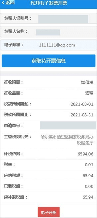 10、缴款完成后,纳税人可在电子税务局App内【代开电子普通发票查询】功能的【获取发票】按钮获取或者国家税务总局全国增值税发票查验平台(https://inv-veri.chinatax.gov.cn/),自行查看、下载或打印已经开具的增值税电子普通发票。