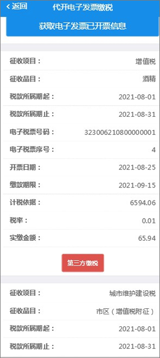 9、确认信息无误,点击【第三方缴税】,选择支付方式并缴纳税款。