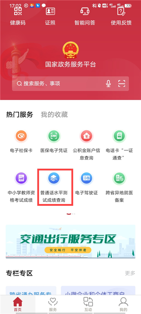 国家政务服务平台怎么查询普通话成绩: