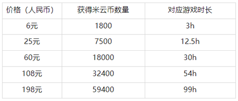 A:旅行者可通过点击信息界面或悬浮球中的【充值】来购买米云币,米云币有以下5个充值档位: